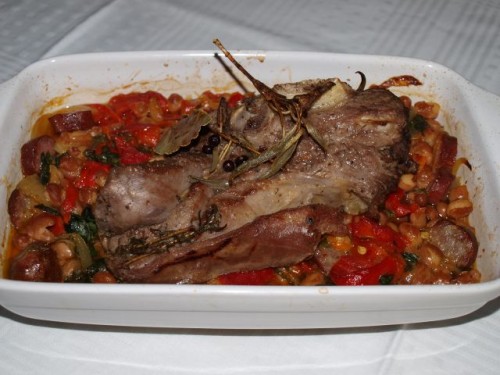 pečena paprika s fižolom, pečena telečja prsa;
