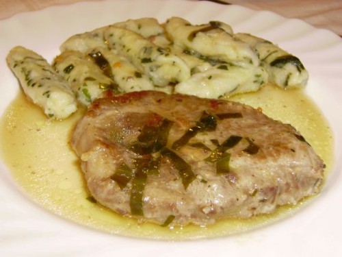 Goveja juhica; vratovina v omaki, njoki s čemažem; zelena solata: