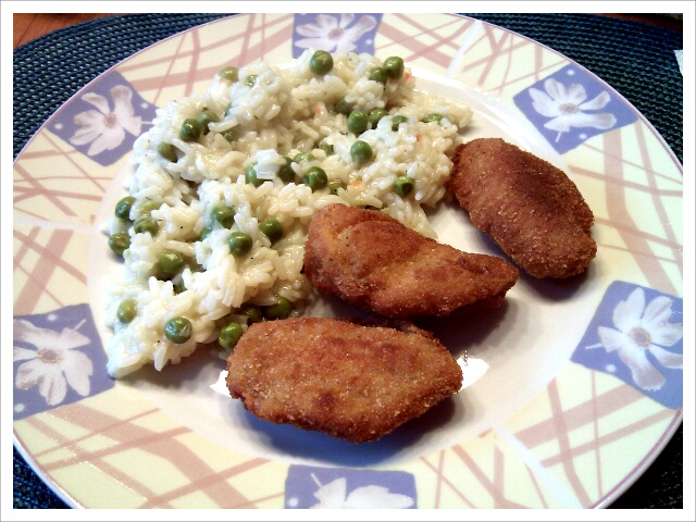 telečja pečenka, rjav, poudarjam, rjav riž, beli beluši in zelen radič sekondo tajo, pa seveda teran, al pa mogoče refoško izpod Kraškega roba, al pa refoško nad Vanganelsko dolino, al pa...![]()