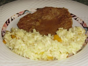 Zelenjavna juhica; goveji zrezek v omaki, riž s korenčkom; zelena solata; češnje:
