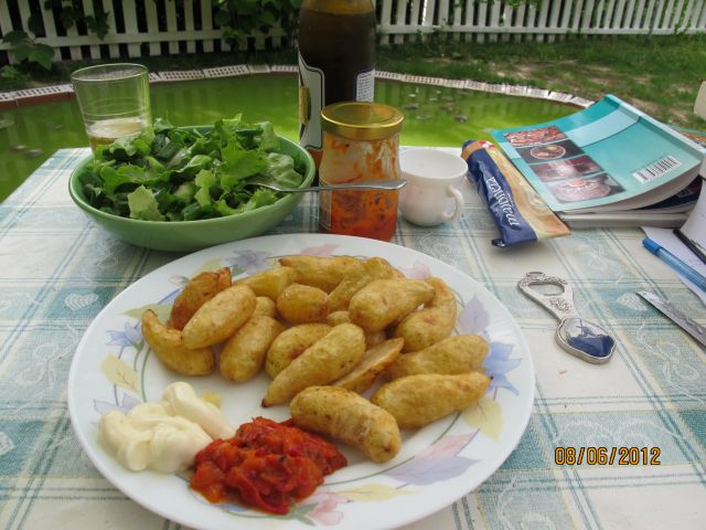 Kaj bo danes, se še ne ve. Skleda hrustajoče itd. solate bo jutri, domadoma, sezona špinače, ki je pri nas trajala 2 meseca, je mimo, zdaj bo sezona blitve, mlade čebule (in šalotke) je na pretek,..... vaški ribnik je predaleč, delo čaka, da se ga opravi, hmmmmmmmmmmmmmmmmmm. No, nekaj bo že. Zdaj sem pri