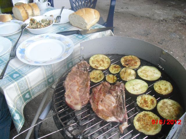 Danes: ker je v našem kraju praznik, je tudi kosilo praznično: bučkina kremna juha, taljata na rukoli, banjaluški čevapčiči in piščanec na žaru, pečen krompir, blitva na maslu, caciki, šopska in zelena solata, caprese (s slovenskim paradižnikom), češnjev biskvit ter skutni in jabolčno-skutni štrukelj