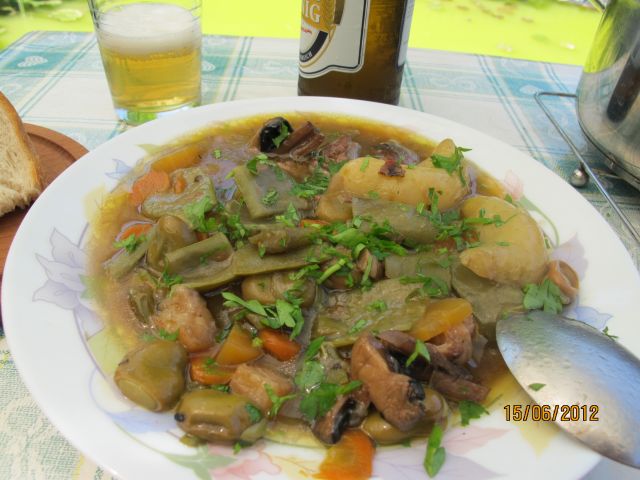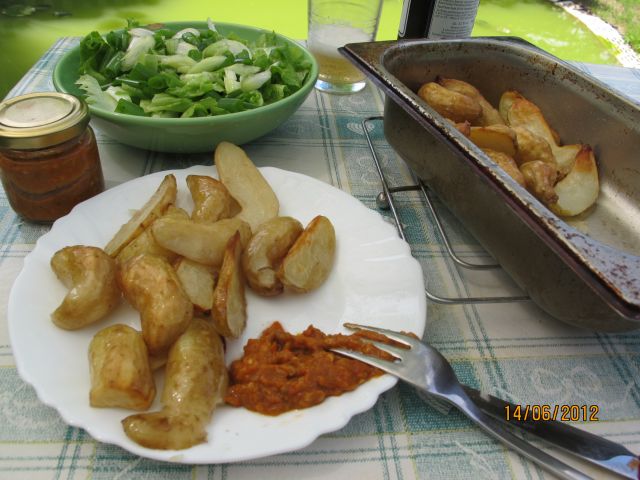 Danes pri meni kosilo iz en nobl kuharske bukle. Receptu se reče " Sin Carne ", vragsiga vedi kaj jim to pomeni ( možna razlaga je, da je sin nekega Carneta to rad jedel ): ( čeprav mal dvomim, un ajvar je precej pekoč )