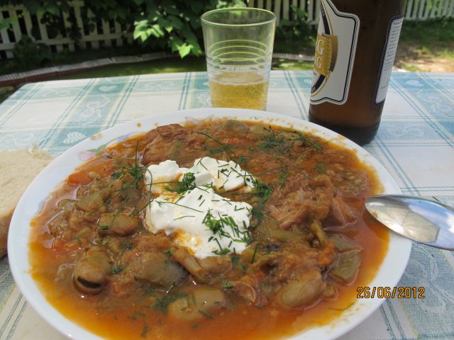 ), zato smo jedli zelenjavno juho iz na vrtu nabrane zelenjave, pečen kifeljčar in solato (tudi z vrta).