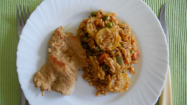 Danes: zelenjavna rižota, puranji zrezki, solata, ![]()