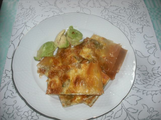 Danes sobota neke: vrste pita ali zlozenka iz listnatega testa nadev kar danes hladilnik premore spinaca,skuta,kisla in sladka smetana jajcka. Poleg za vzorec malo zrelega avokada.![]()