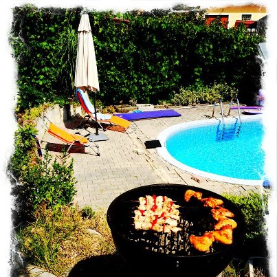 Pri nas pa danes ribe, kalamari, bučke in gobice na žaru, v pečici pečen domač krompir,