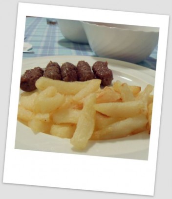 Kosilo pri hčerki: Gobova juhica (peklensko dobra); pečen krompir, čevapčiči, piščančja nabodala; mešana solata;