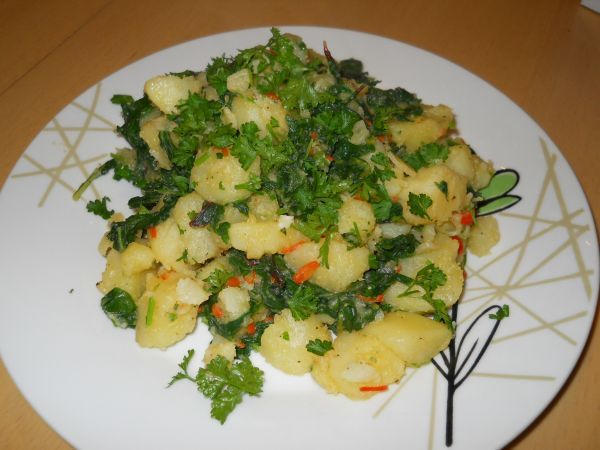 Danes: stročji fižol in kuhan krompir, zabeljeno z ocvirki in kislo smetano.