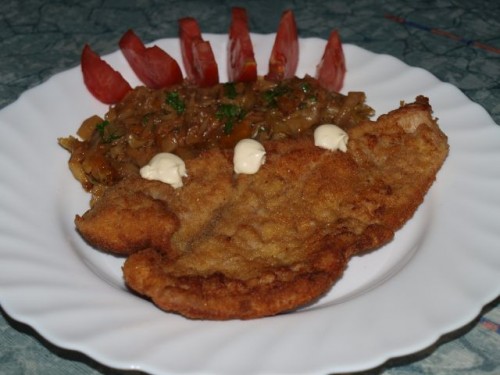 Sladko zelje s korenčkom, dunajski zrezek, zelena solata: