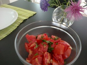 Včeraj: Frittata s paradižikovo salso (Rudolphov recept) in zeleno solato.