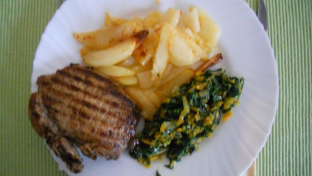 Danes: zarebrnice, blitva in korenček, pečen krompir, mešana solata