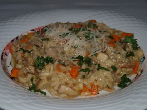 Rižota (zelenjava, puranji koščki, gobice); endivija s krompirjem: