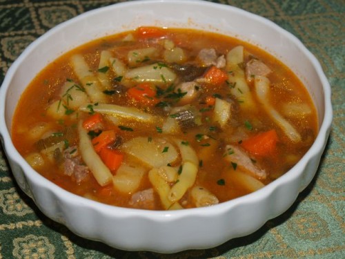 Čorbica s stročjim fižolom in puranjimi koščki: