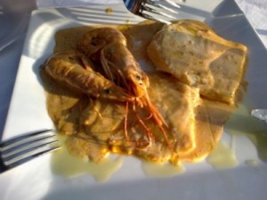 msegovDanes: v žar ponvi pečene kozice s česnom in paradižnikova solata.