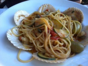 Nedelja: Ribja solata, orehovi njoki s škampi, špagete s školjkami, mešana solata, češnjeva krostata, malvazija...![]()