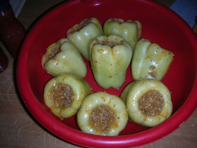 Danes: filane paprike, pire krompir, radič s krompirjem.........in močno dežuje tu pri nas.........