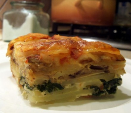 Danes: krompirjeva zloženka (jajčevec, blitva, ovčji sir, začimbe)