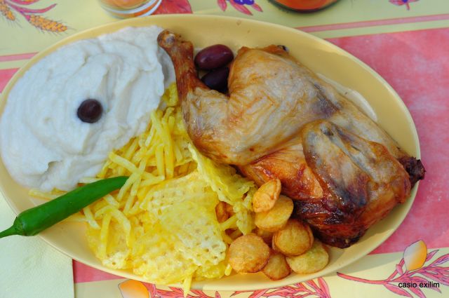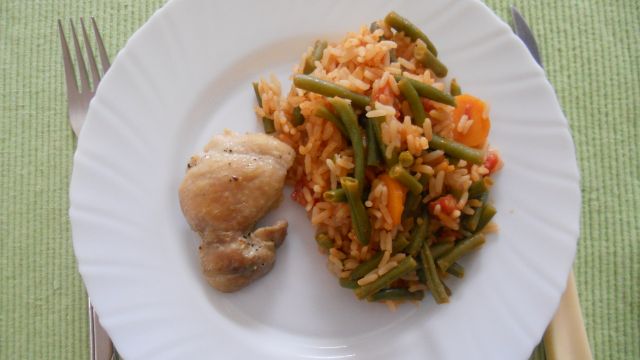rosieDanes: djuveč iz graha in stročjega fižola, pečen piščanec, mešana solata