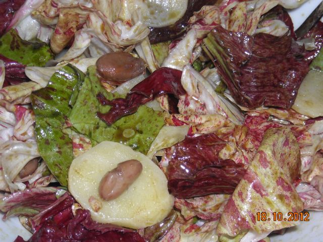 Zraven bo dobil kuhan krompir, za nas ostale pa ga bom spekla. Midve z starejšo bova ribo-brancina, mlajša izbirčnejša pa piščančka. Pa domača endivija z radičem in še kak kos krompirja bo padel notri.