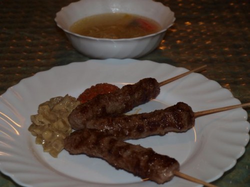 Danes brzinsko kosilo - kurja juhica (od včeraj); čevapčiči, paprika v zenfu, ajvar, kruh; domača rdeča pesa: