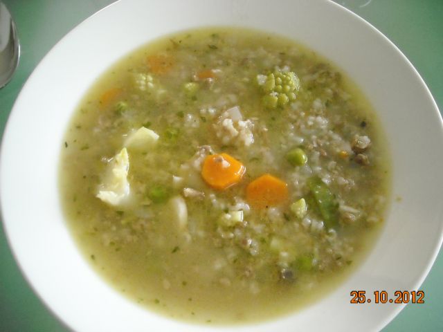 Načrtovala sem dneve testenin pa se mi je včeraj sesulo, ko sem vzela iz skrinje že potenstano faširano in riž, potem je nastala tale čorba. To je to, ko nisem napisal gor, kaj je not. Zamenjala sem z lečo.