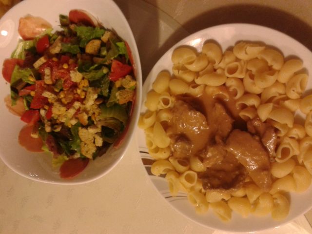 rosieDanes goveja juha za nekatere čista, za druge z zlatimi kroglicami( ojoj, to smo pa kot večkrat jedli), lazanja, mešana solata