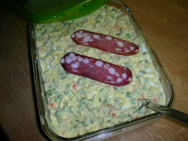 Milžiprežganka, polpeti, francoska solata, kavica in bajaderce, lep pozdrav ![]()