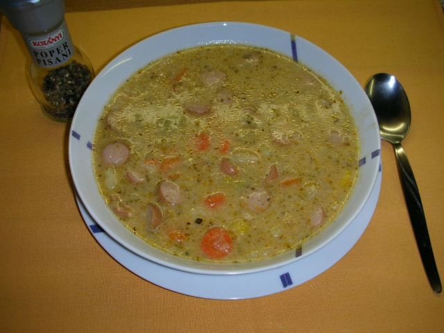Danes: krompirjevo-zelenjavna čorbica s hrenovkami in kruh.