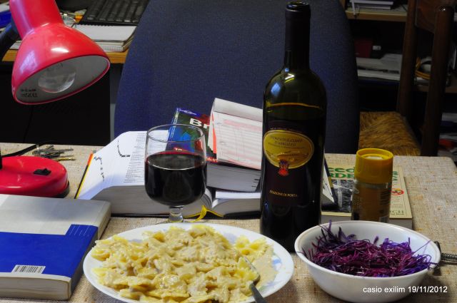 rosieDanes nek čuden dan! Imel opravke v metropoli pol se mal potepal, pa zmanjkalo časa za kosilo. Mišljeno je bilo kislo zelje, pol načrt spremenjen, testenine bojo hitreje. Omaka od šampinjonov. Testenine naj bi bile kuhane 13-15 min al dente ( *ebo jih al dente in kdo ga je izmislil ), po 25 min so bile še kar al dente, po 35 tudi, pol se mi ni ljubilo več čakat ( tako mi je tudi treba, če kupujem izdelke no nejm ). Torej nekuhane testenine prelijem z omako, premešam, poskusim, ničemur podobno (*ebo jih al dente ) pojem morda eno četrtino planiranega, pol pa razveselim mačke. To so pa tudi ene čudne živali: vse kaj je neužitnega jim gre v slast. Ja nič, vino ja še kar ( uf, matr, za jutar sem nabavil kartonsko buteljko belega, se že veselim ):