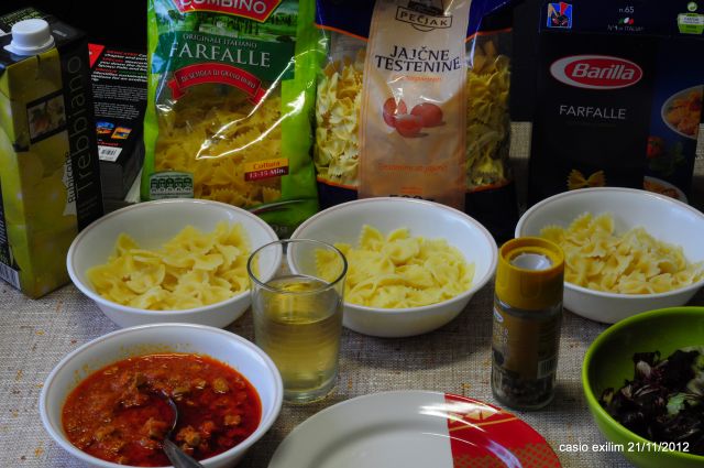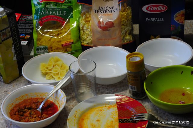 colombinove frčafele, naj bi se kuhale 13- 15 min, po 35 minutah so še kar al dente.