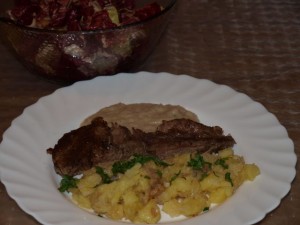 jutri: počasi pečena goveja rebra alla gordon (za odrasla), bolonjska omaka (za tamala), njoki (za vse) ter solato (za naju zeleno, za njo paradižnik, za njega pesa)