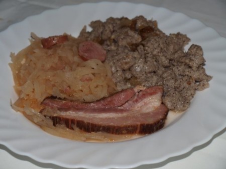 Kisla repa s suhimi rebrci, ajdovi žgančki zabeljeni z ocvirki: