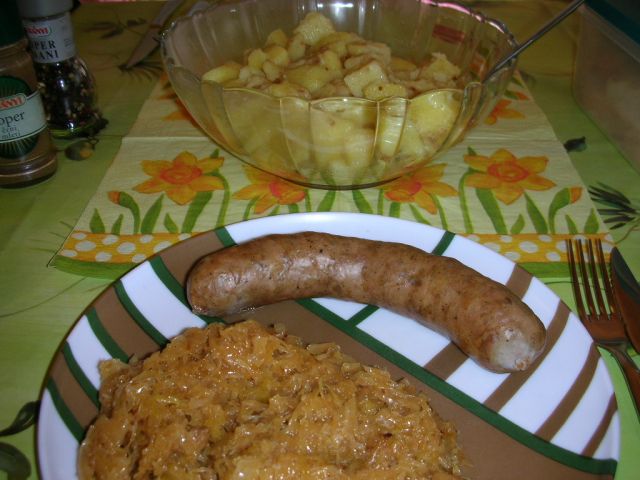 MilžiDanes: dušeno kislo zelje, klobasa in krompir zabeljen z bohinjsko zaseko.