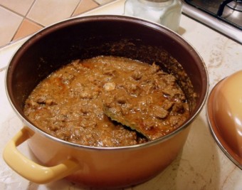 Prisotne so tri generacije, pa še mudilo se nam je. Naredila sem naslednji kaos: segedin golaž (iz zmrzovalnika), pire krompir, čevapčiči, zelena solata s fižolom, za najmlajšo (brez soli) pire krompir in por.