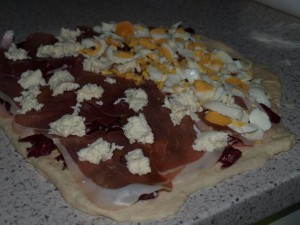, prinešene z vrta , govedina iz juhe, radič (z domačega vrta, nabran med dežnimi kapljami - z veliko domišljije so bile to