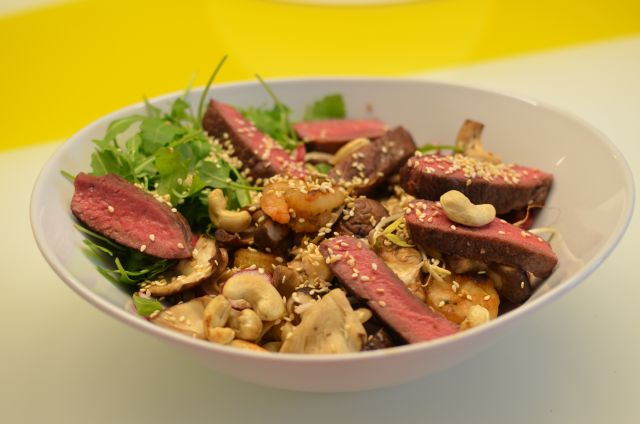 pri nas danes spet Jamie na obisku :D, tokrat z Sizzling beef steak, hoi sin prawns&noodle bowl. danes celo slikca ;). sem pozabila dodat, da je bila še miso juha (instant ;) )