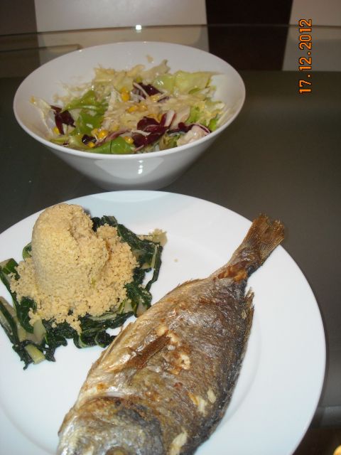 Kosila. Ponedljek: orada, kuskus, blitva.