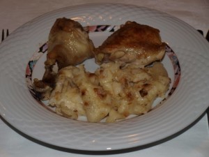 Danes: piščanec, pečen v soli, pire krompir in tenstana jabolka; popoldne pa praznično druženje pri njegovih sorodnikih: rižota, kristalka s fižolom, potem pa: 2 različni potici, ocvirkovka, piškoti, 3 različne torte, pa še kaj bi se našlo