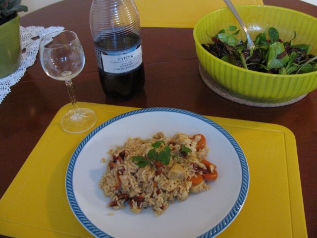 Včeraj: Hrustljavo pečena kurja bremza oz. tačka + popražen kuskus na čebuli/česnu z ogromno currya + podušena cvetača + skledica domače vložene pese,svežega kislega zelja, ter domače vložene paprike. Za povrhu pa VELIAK ŽLICA zenfa. NJAAAAAAAM, obožujem ZENFIČ :D