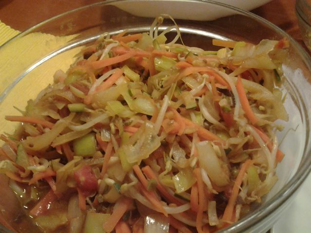 danes: pečena svinjska krača in krompir, mešana solata: kitajsko zelje,endivija,rukola,rdeč radič,paradižnik, koruza.....kar nekaj v stilu, čiščenje po hladilniku