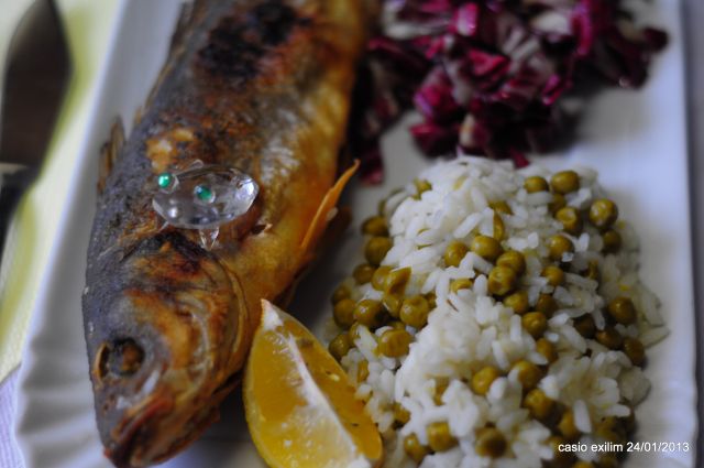 ),malo ohlajena in popečena na olivnem olju z malo česna,zelena solata.