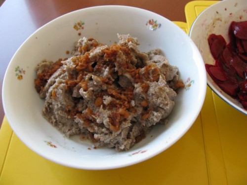 tanjajAjdovi žganci z ocvirki in rdeča pesa - jedla sva kar iz skupne sklede: