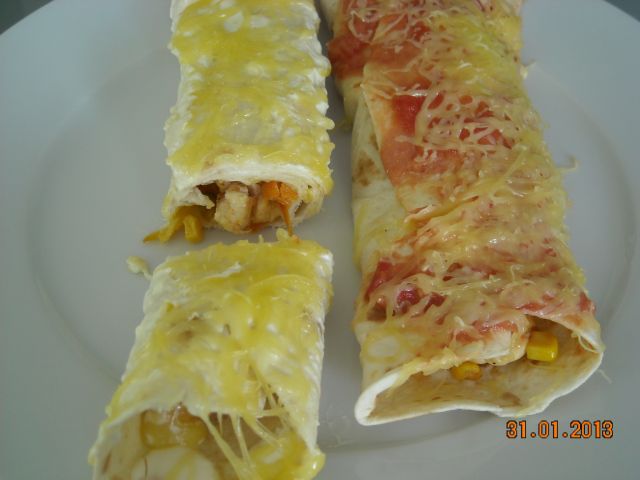 Tortilja s piščance, korenjem, koruzo, papriko, porom.