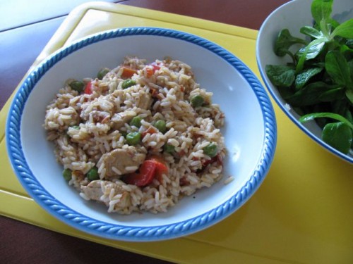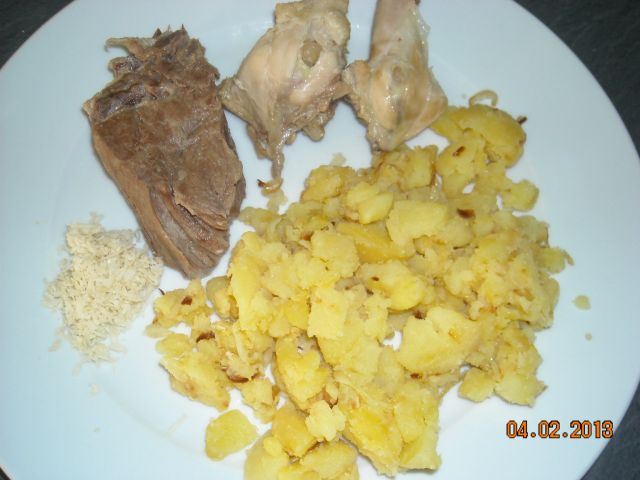 Danes bomo nekaj zakuhali v govejo juho, ki je ostala od včeraj, peče se svinjski kotlet in pripravlja ajdova kaša s papriko. Zame namesto kotleta in ajdove kaše kvinoja z zelenjavo. Za vse pa veliko radiča v solati.