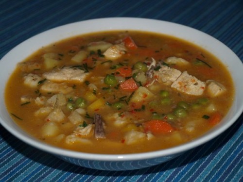 Nedelja: juha iz hrbtovne, pražen krompir, pečenka, zelena solata.