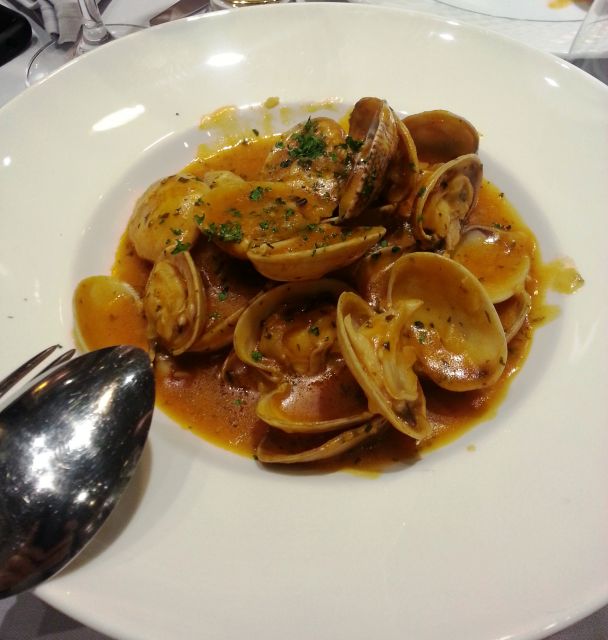 Najprej smo dobili nekakšne krokete ( vsaj mislil sem tako, da so celo polnjeni s sirom) žal slike nimam, a so mi povedali, da je to nekakšna maščoba, ki jo pobirajo z juhe, ji dodajo korizno moko in ocvrejo