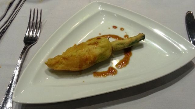 Ocvrt bučkin cvet polnjen z sirovo kremo....ludnica, kako dobro je šele to bilo..