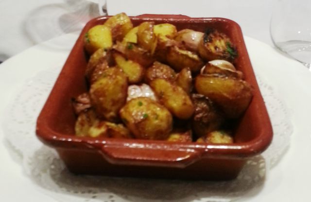 Potem so prinesli na mizo krompir pečen z celim česnom (neolupljenim)