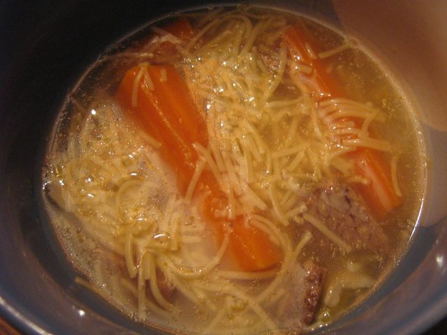 nittaSe ponavlja včerajšni jedilnik, saj sem si toliko nabasal lonec, da je bilo do roba in sem kar na hitro preložil polovico v drugo skledo. Takšne juhice morajo biti ja. Da žlica stoji!!!